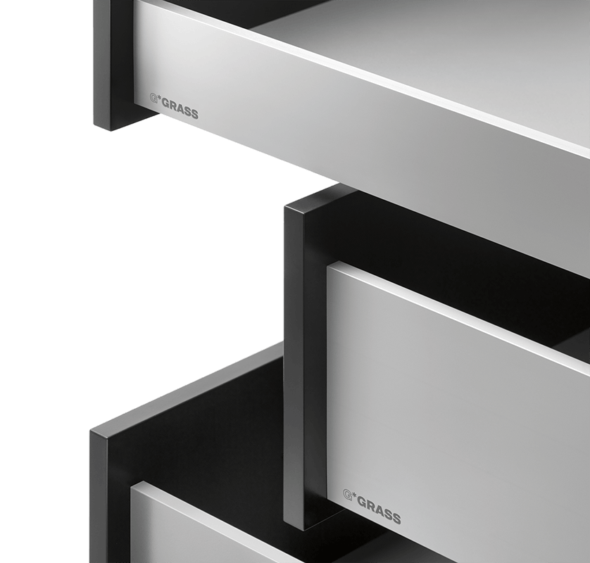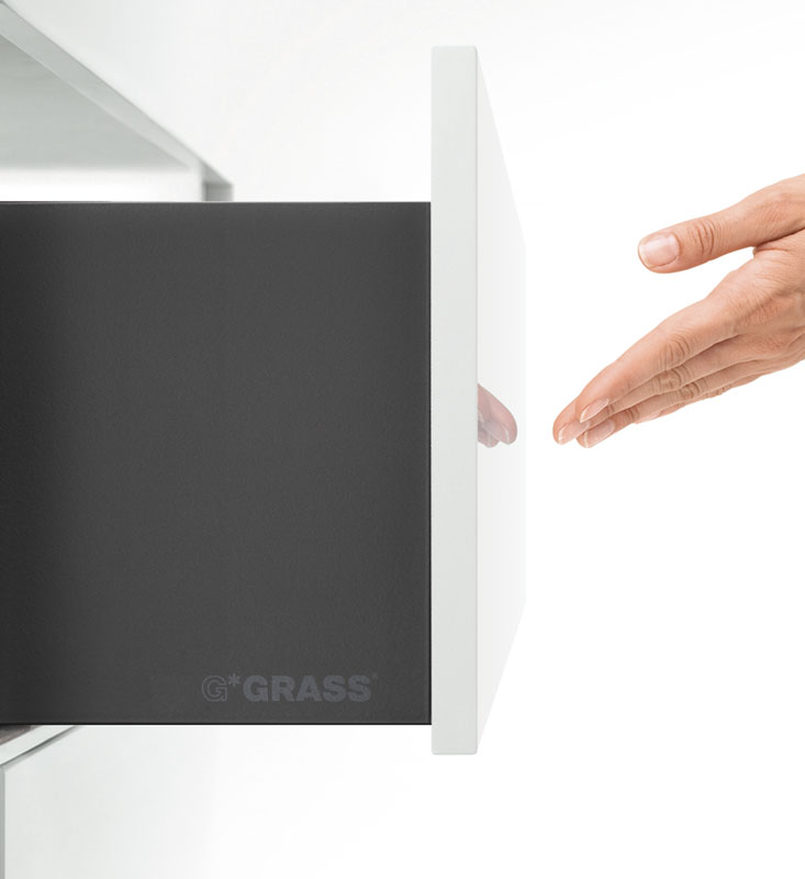 GRASS VIONARO – sistem skritih vodil omogoča lahkotno drsenje predalov tekom celotne življenske dobi pohištva. Celo najbolj obremenjeni sistemi na izvlek lahkotno drsijo in navdušujejo z naprednimi možnostimi spuščanja. Fronte brez ročajev odprite z enostavnim dotikom ob mehanskih podpori z odpiranjem TIP-ON. Za zapiranje je dovolj nežni potisk fronte. Mehanizem TIP-ON se ne bo poškodoval niti v primeru, da vrata in preklopna vrata kot tudi sisteme na izvlek povlečete z roko.